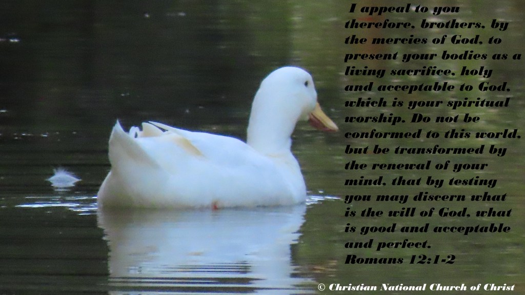 I appeal to you therefore, brothers, by the mercies of God, to present your bodies as a living sacrifice, holy and acceptable to God, which is your spiritual worship. Do not be conformed to this world, but be transformed by the renewal of your mind, that by testing you may discern what is the will of God, what is good and acceptable and perfect.