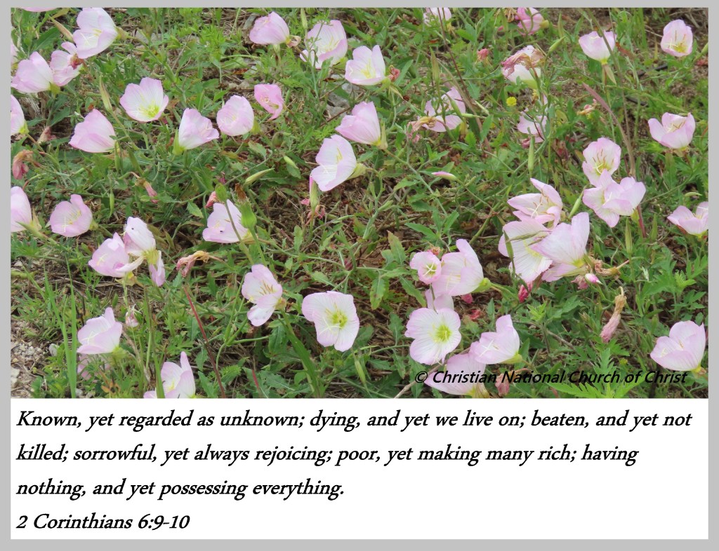 Known, yet regarded as unknown; dying, and yet we live on; beaten, and yet not killed; sorrowful, yet always rejoicing; poor, yet making many rich; having nothing, and yet possessing everything.