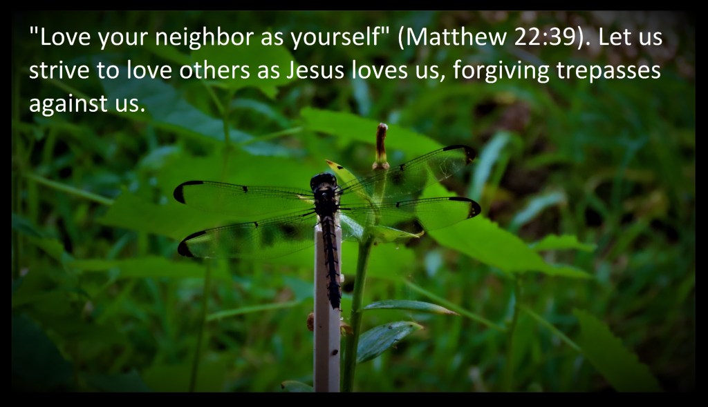 “Love your neighbor as yourself” (Matthew 22:39). Let us strive to love others as Jesus loves us, forgiving trespasses against us.