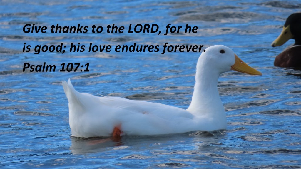 Give thanks to the LORD, for he is good; his love endures forever. Psalm 107:1