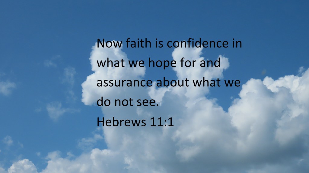 Now faith is confidence in what we hope for and assurance about what we do not see. Hebrews 11:1