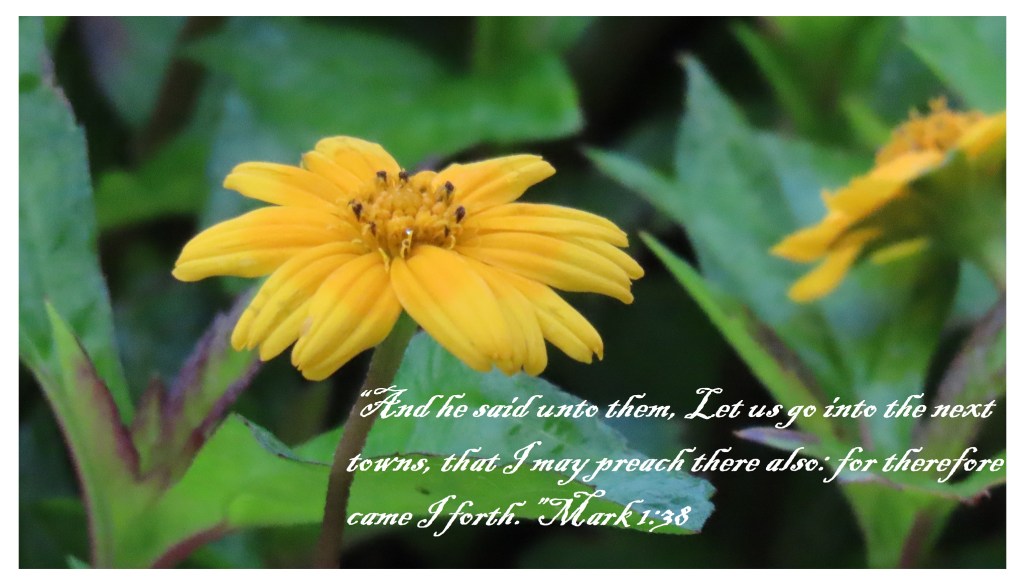 “And he said unto them, Let us go into the next towns, that I may preach there also: for therefore came I forth.” Mark 1:38