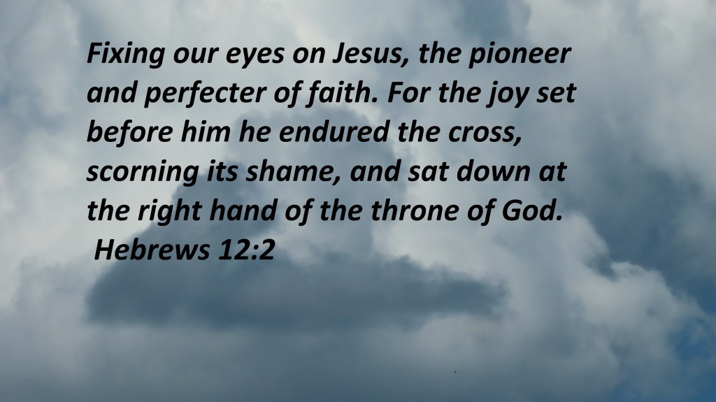 Fixing our eyes on Jesus, the pioneer and perfecter of faith. For the joy set before him he endured the cross, scorning its shame, and sat down at the right hand of the throne of God. Hebrews 12:2