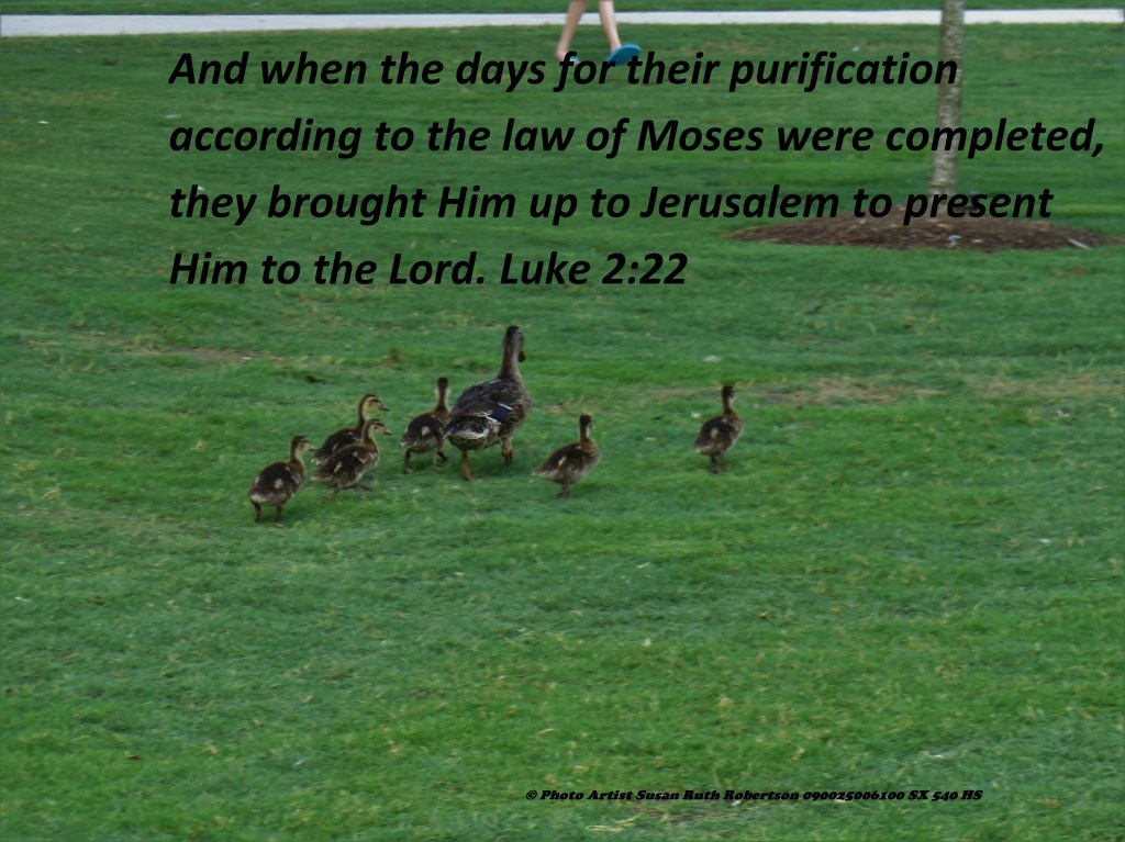 And when the days for their purification according to the law of Moses were completed, they brought Him up to Jerusalem to present Him to the Lord. Luke 2:22