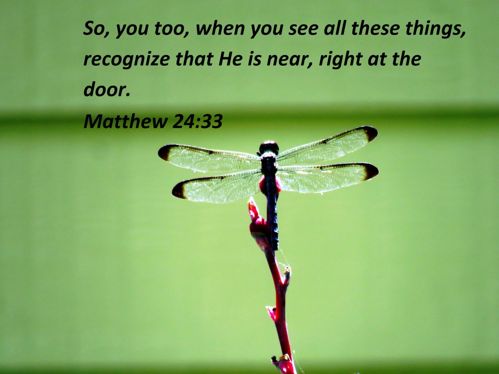 So, you too, when you see all these things, recognize that He is near, right at the door. Matthew 24:33