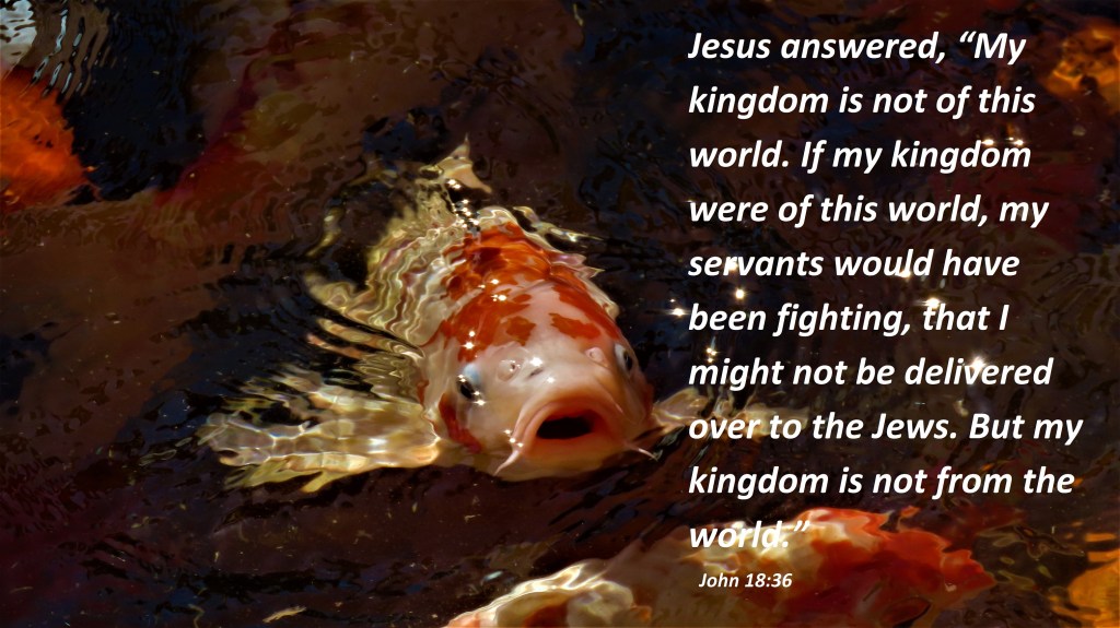 Jesus answered, “My kingdom is not of this world. If my kingdom were of this world, my servants would have been fighting, that I might not be delivered over to the Jews. But my kingdom is not from the world.” John 18:36