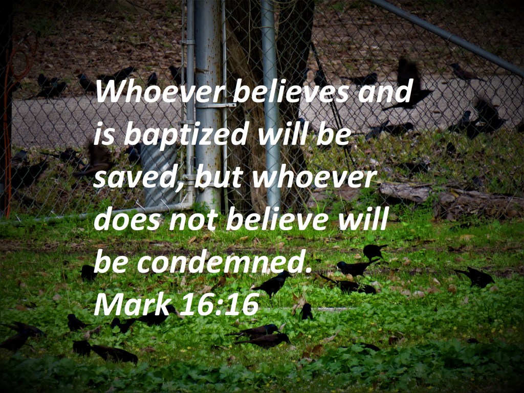 Whoever believes and is baptized will be saved, but whoever does not believe will be condemned.