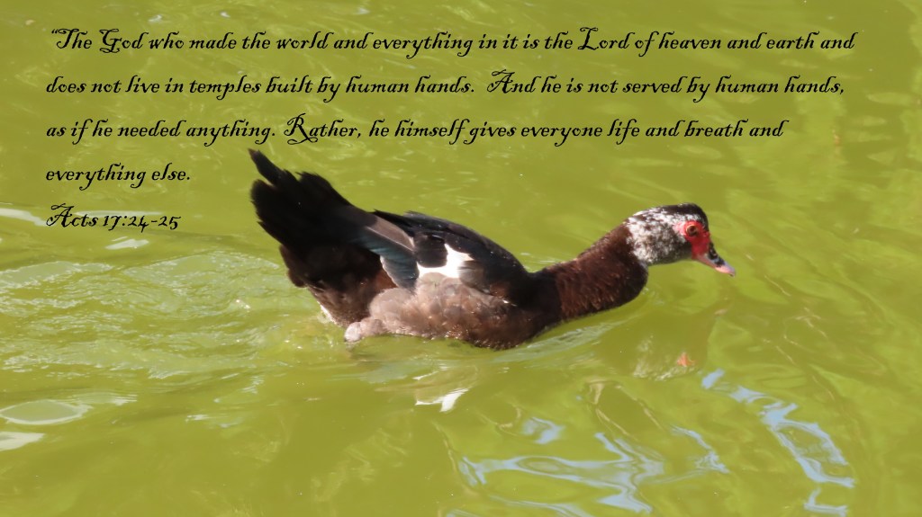 “The God who made the world and everything in it is the Lord of heaven and earth and does not live in temples built by human hands. And he is not served by human hands, as if he needed anything. Rather, he himself gives everyone life and breath and everything else.