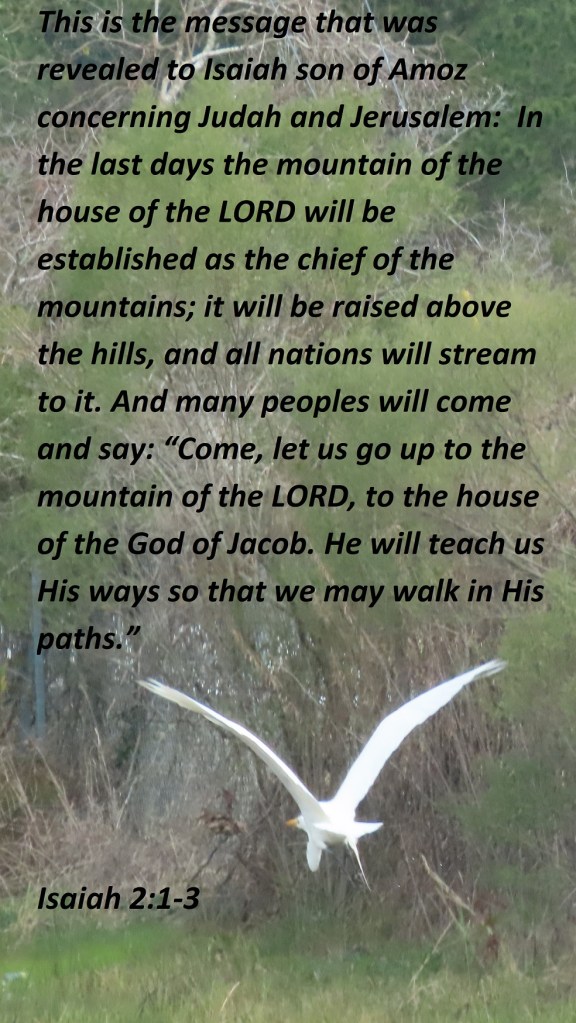 This is the message that was revealed to Isaiah’s son of Amoz concerning Judah and Jerusalem: In the last days the mountain of the house of the LORD will be established as the chief of the mountains; it will be raised above the hills, and all nations will stream to it. And many peoples will come and say: “Come, let us go up to the mountain of the LORD, to the house of the God of Jacob. He will teach us His ways so that we may walk in His paths.”