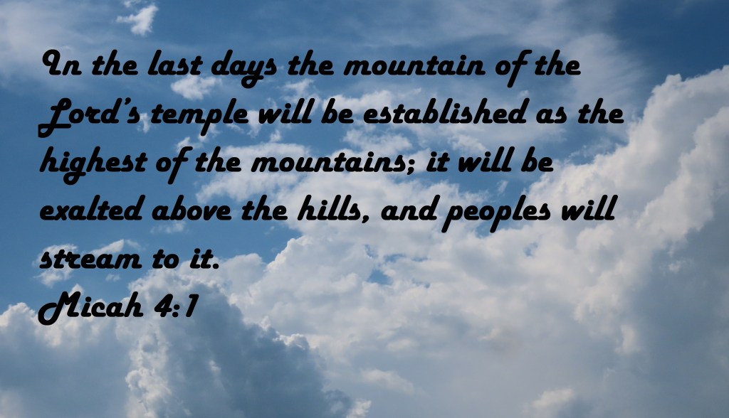 In the last days the mountain of the Lord’s temple will be established as the highest of the mountains; it will be exalted above the hills, and peoples will stream to it.