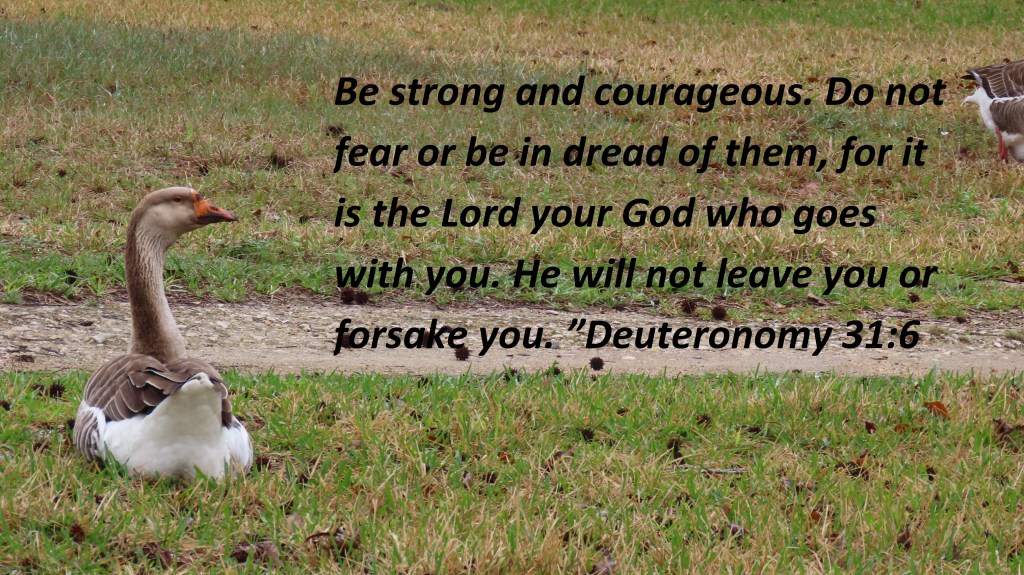 Be strong and courageous. Do not fear or be in dread of them, for it is the Lord your God who goes with you. He will not leave you or forsake you.” Deuteronomy 31:6