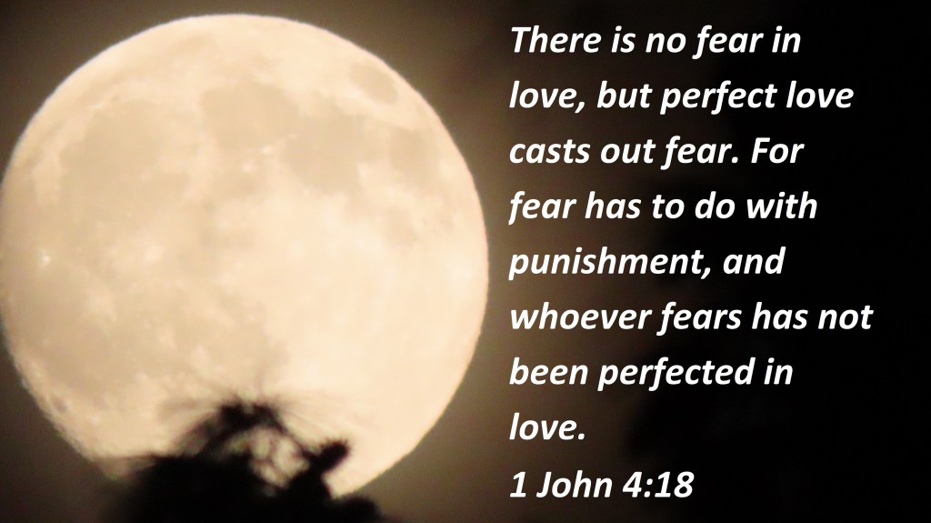 There is no fear in love, but perfect love casts out fear. For fear has to do with punishment, and whoever fears has not been perfected in love.