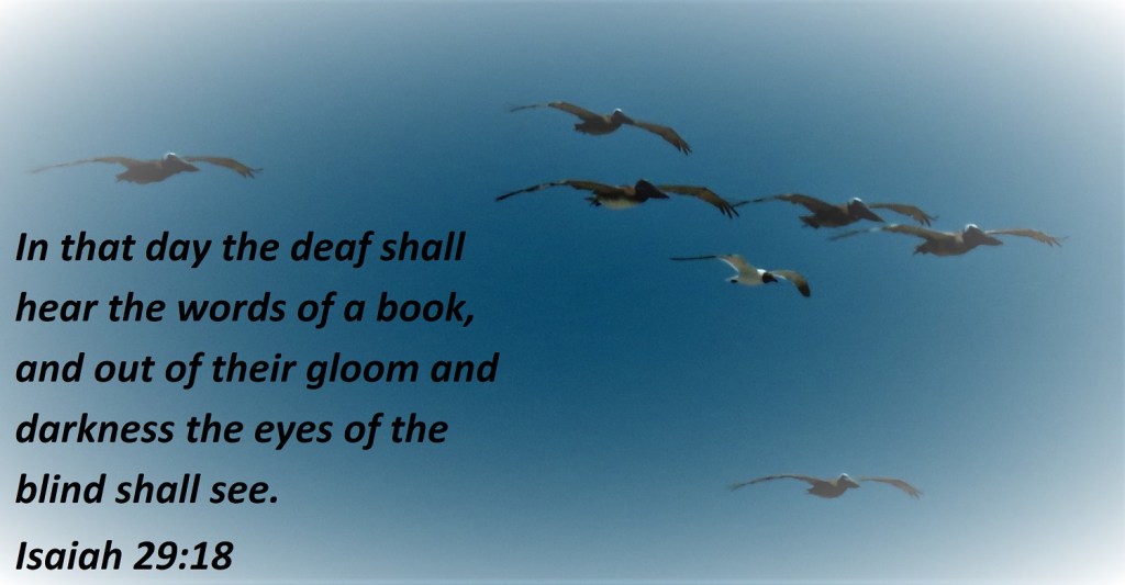In that day the deaf shall hear the words of a book, and out of their gloom and darkness the eyes of the blind shall see.