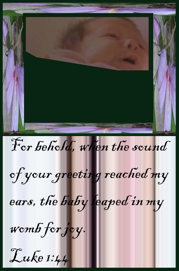 For behold, when the sound of your greeting reached my ears, the baby leaped in my womb for joy. Luke 1:44