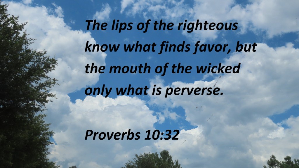 The lips of the righteous know what finds favor, but the mouth of the wicked only what is perverse. Proverbs 10:32