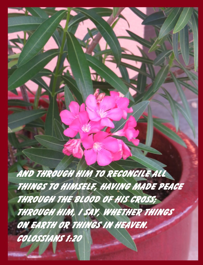 And through Him to reconcile all things to Himself, having made peace through the blood of His cross; through Him, I say, whether things on earth or things in heaven.