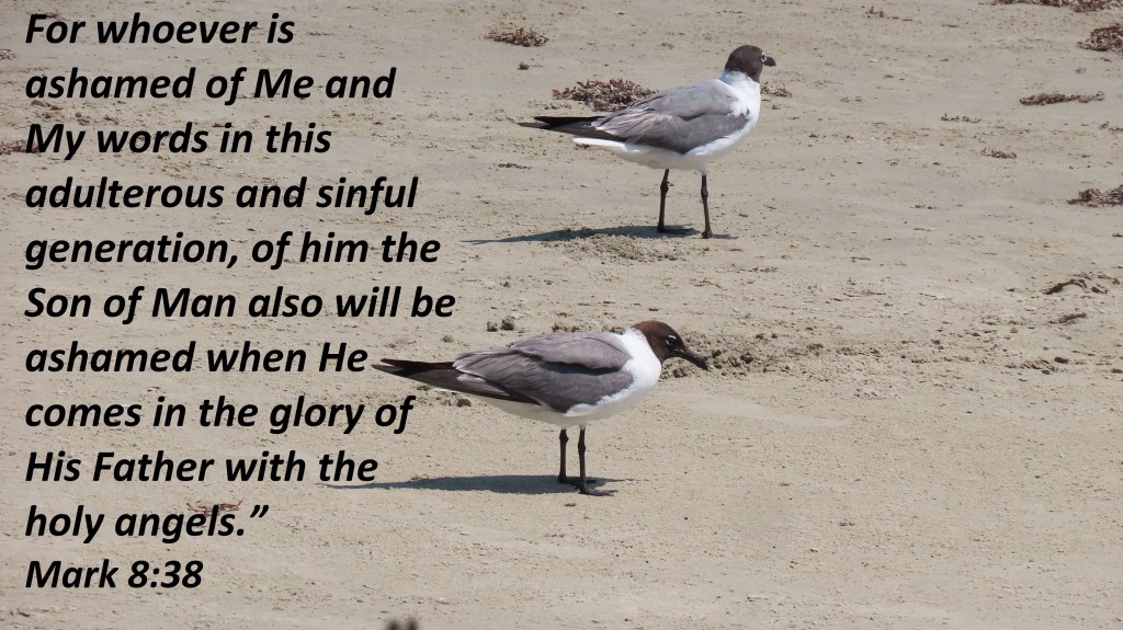 For whoever is ashamed of Me and My words in this adulterous and sinful generation, of him the Son of Man also will be ashamed when He comes in the glory of His Father with the holy angels.”