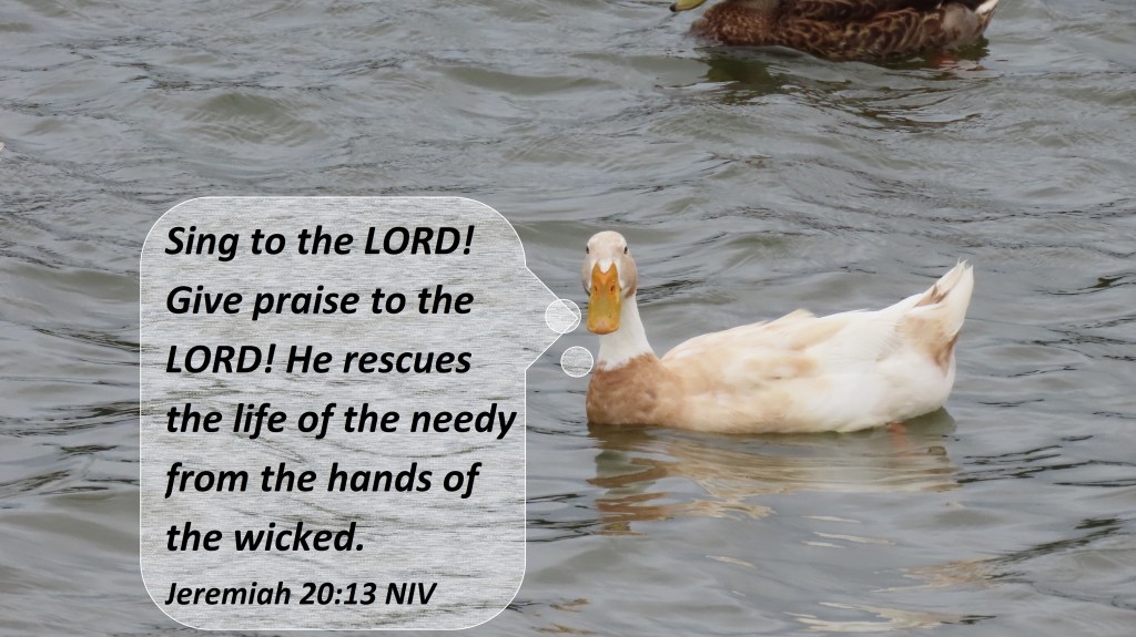 Sing to the LORD! Give praise to the LORD! He rescues the life of the needy from the hands of the wicked. Jeremiah 20:13 NIV