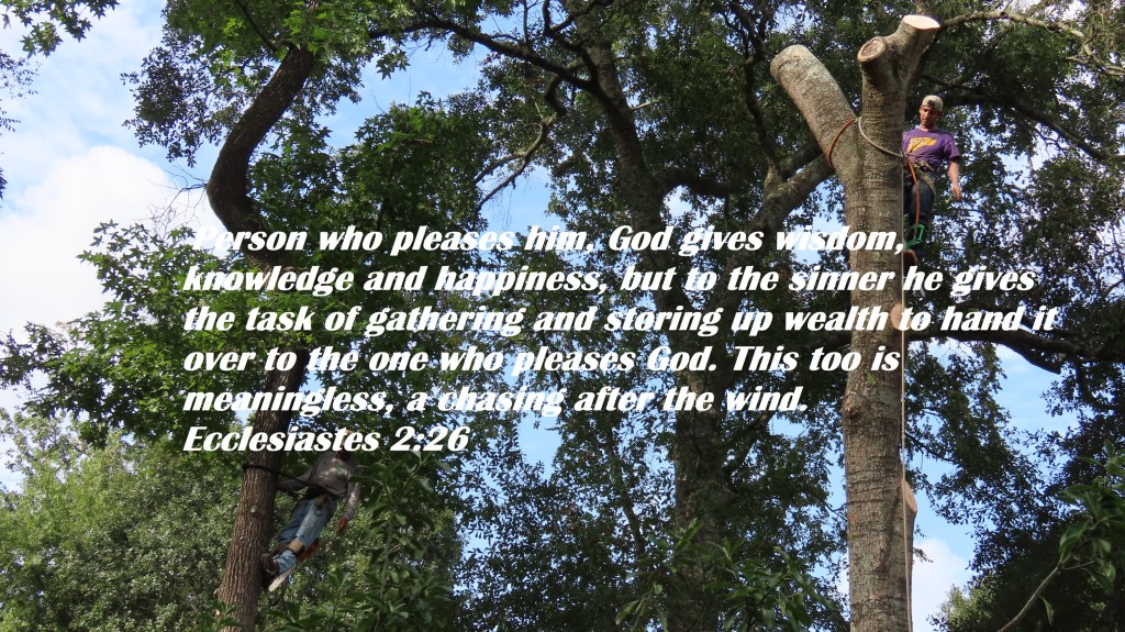 To the person who pleases him, God gives wisdom, knowledge and happiness, but to the sinner he gives the task of gathering and storing up wealth to hand it over to the one who pleases God. This too is meaningless, a chasing after the wind.