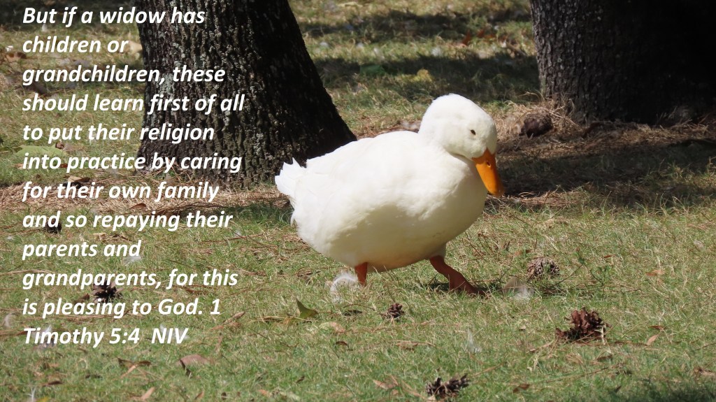 But if a widow has children or grandchildren, these should learn first of all to put their religion into practice by caring for their own family and so repaying their parents and grandparents, for this is pleasing to God. 1 Timothy 5:4 NIV