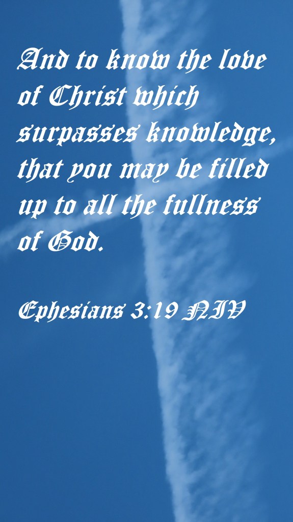 And to know the love of Christ which surpasses knowledge, that you may be filled up to all the fullness of God. Ephesians 3:19 NIV