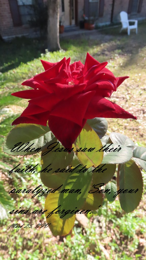 When Jesus saw their faith, he said to the paralyzed man, ‘Son, your sins are forgiven.’