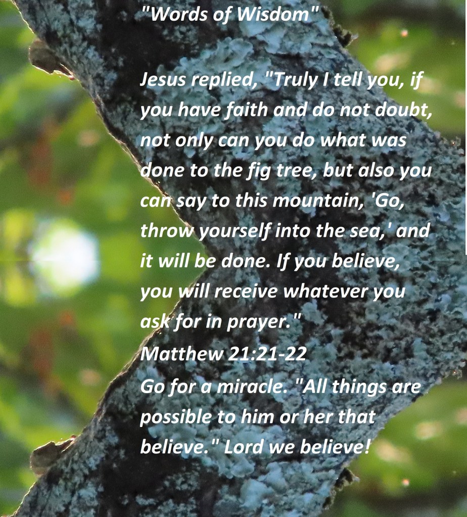 Jesus replied, “Truly I tell you, if you have faith and do not doubt, not only can you do what was done to the fig tree, but also you can say to this mountain, ‘Go, throw yourself into the sea,’ and it will be done. If you believe, you will receive whatever you ask for in prayer.”