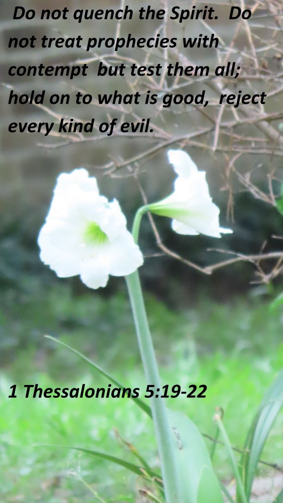 Do not quench the Spirit. Do not treat prophecies with contempt but test them all; hold on to what is good, reject every kind of evil.