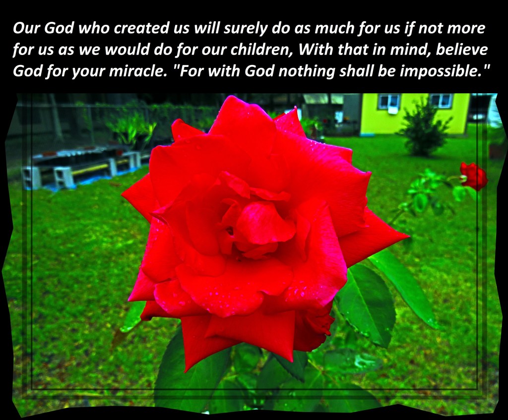 Our God who created us will surely do as much for us if not more for us as we would do for our children, with that in mind, believe God for your miracle. “For with God nothing shall be impossible.”