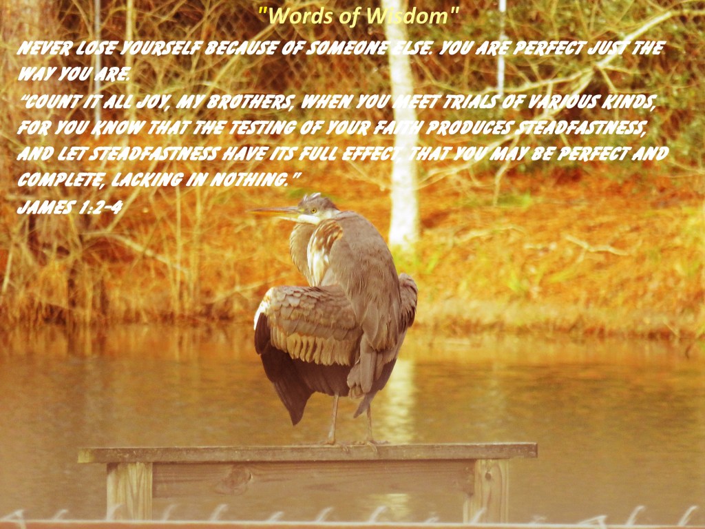 “Count it all joy, my brothers, when you meet trials of various kinds, for you know that the testing of your faith produces steadfastness, and let steadfastness have its full effect, that you may be perfect and complete, lacking in nothing.”