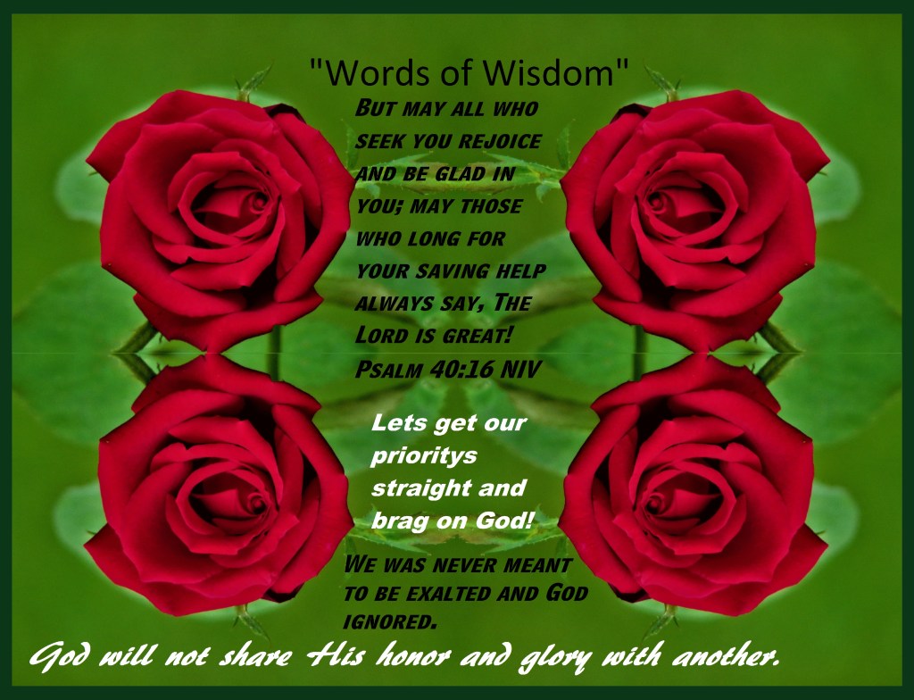 Let’s get our priority’s straight and brag on God! We were never meant to be exalted and God ignored. God will not share His honor and glory with another.