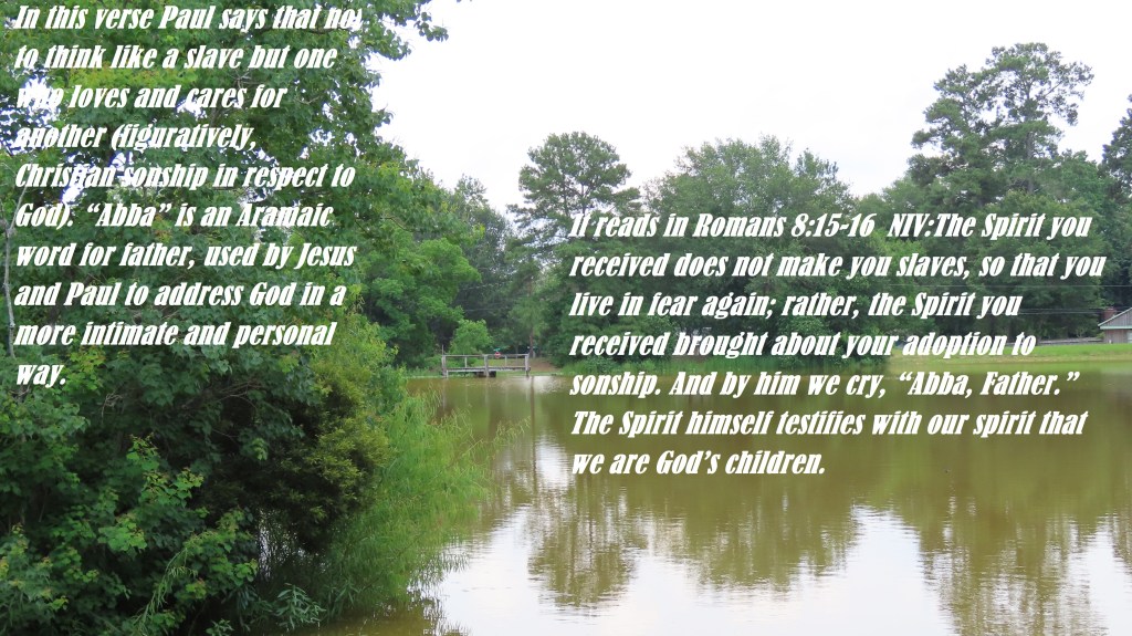 In this verse Paul says that not to think like a slave but one who loves and cares for another (figuratively, Christian sonship in respect to God). “Abba” is an Aramaic word for father, used by Jesus and Paul to address God in a more intimate and personal way.