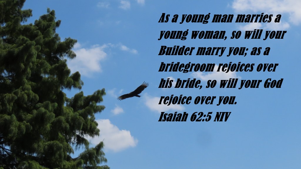 As a young man marries a young woman, so will your Builder marry you; as a bridegroom rejoices over his bride, so will your God rejoice over you.