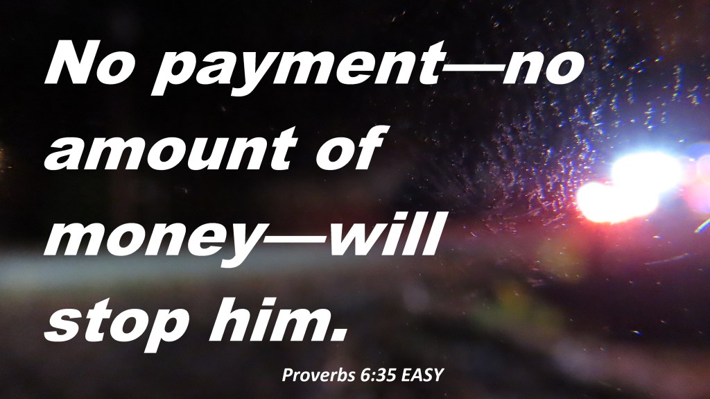 No payment—no amount of money—will stop him. Proverbs 6:35 EASY