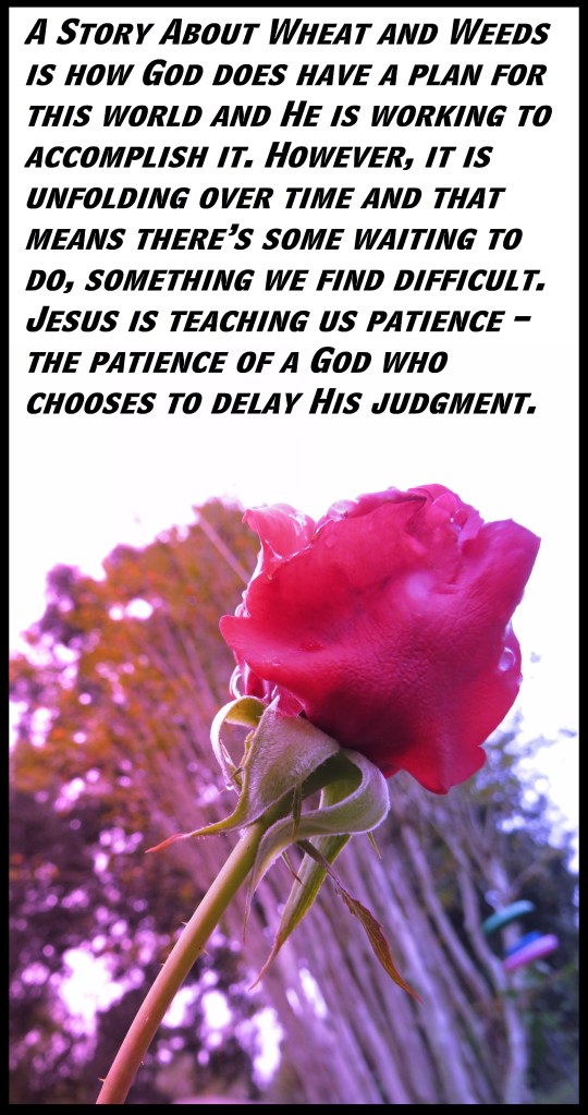 A Story About Wheat and Weeds is how God does have a plan for this world, and He is working to accomplish it. However, it is unfolding over time and that means there’s some waiting to do, something we find difficult. Jesus is teaching us patience – the patience of a God who chooses to delay His judgment.