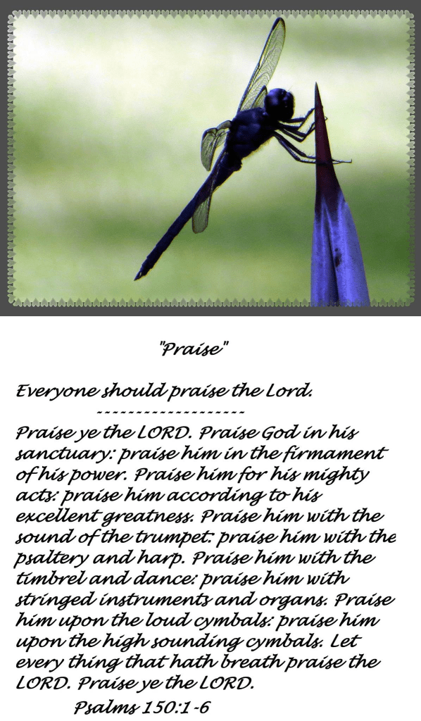Praise ye the LORD. Praise God in his sanctuary: praise him in the firmament of his power. Praise him for his mighty acts: praise him according to his excellent greatness. Praise him with the sound of the trumpet: praise him with the psaltery and harp. Praise him with the timbrel and dance: praise him with stringed instruments and organs. Praise him upon the loud cymbals: praise him upon the high sounding cymbals. Let every thing that hath breath praise the LORD. Praise ye the LORD. Psalms 150:1-6