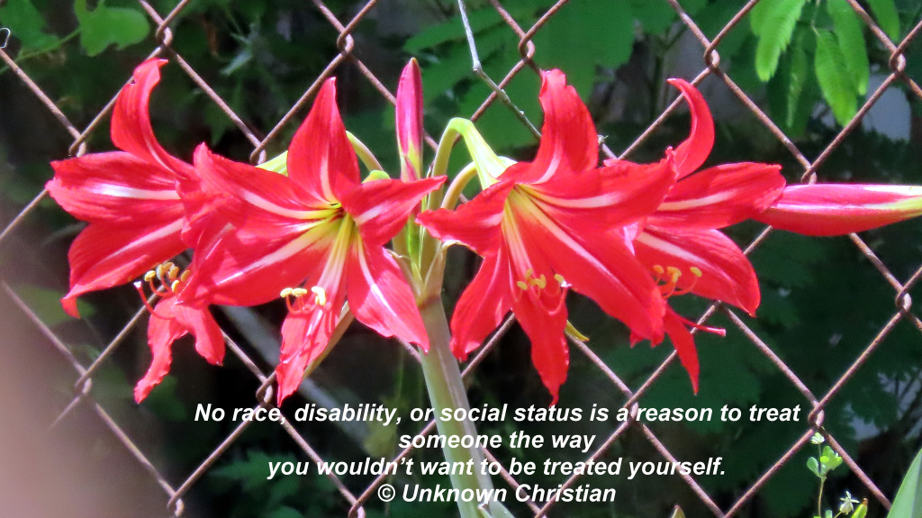 No race, disability, or social status is a reason to treat someone the way you wouldn’t want to be treated yourself.