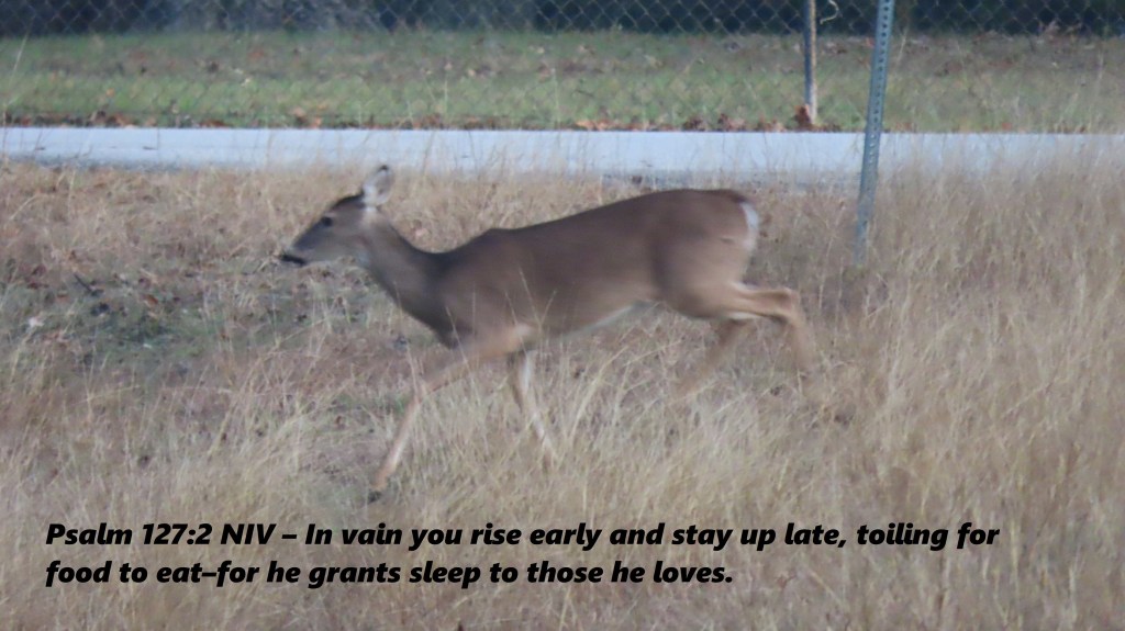In vain you rise early and stay up late, toiling for food to eat–for he grants sleep to those he loves.