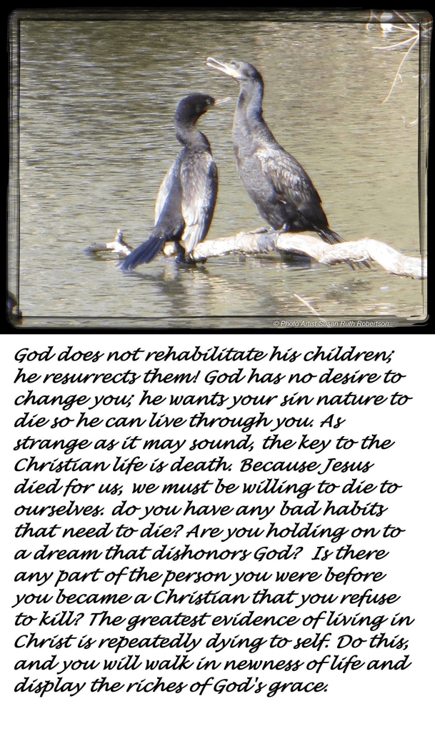God does not rehabilitate his children; he resurrects them! God has no desire to change you; he wants your sin nature to die so he can live through you.❤️