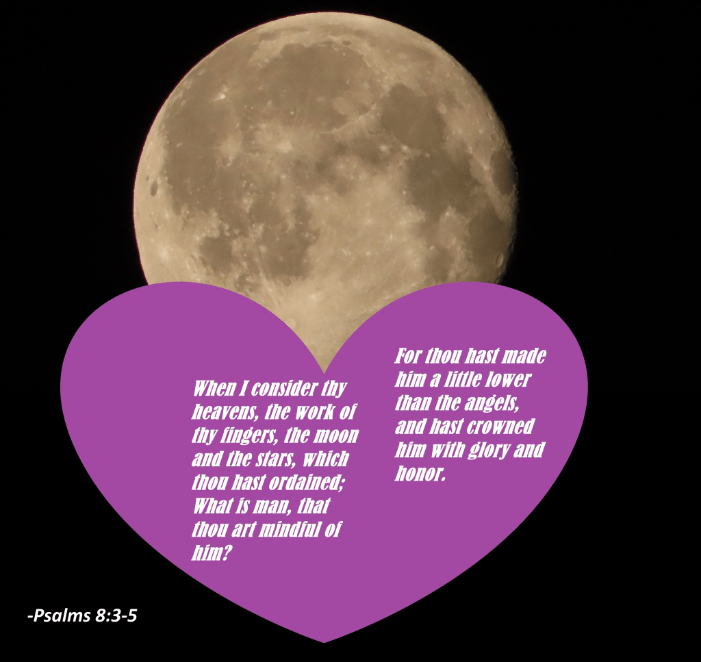 When I consider thy heavens, the work of thy fingers, the moon and the stars, which thou hast ordained; What is man, that thou art mindful of him? and the son of man, that thou visitest him? For thou hast made him a little lower than the angels and hast crowned him with glory and honor.