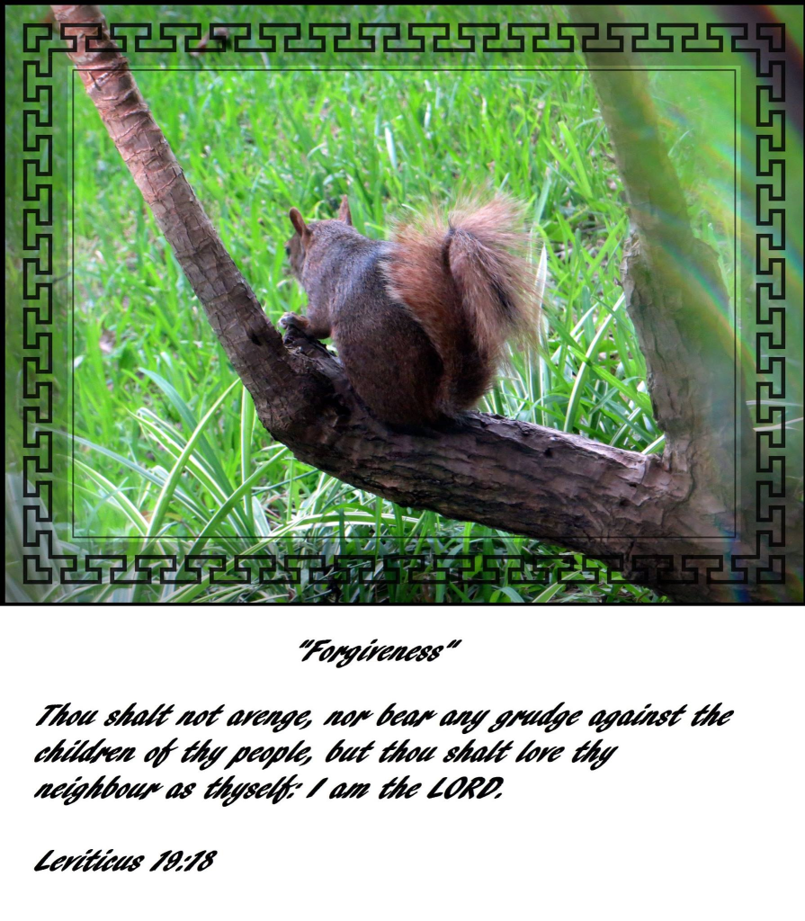 പ്രതികാരം നിന്റെ ജനത്തിന്റെ മക്കളോടു പക അരുതു, നിന്നെപ്പോലെ നിന്റെ അയൽക്കാരനെയും സ്നേഹിക്കണം; ഞാൻ യഹോവ ആകുന്നു. ലേവ്യപുസ്തകം 19:18