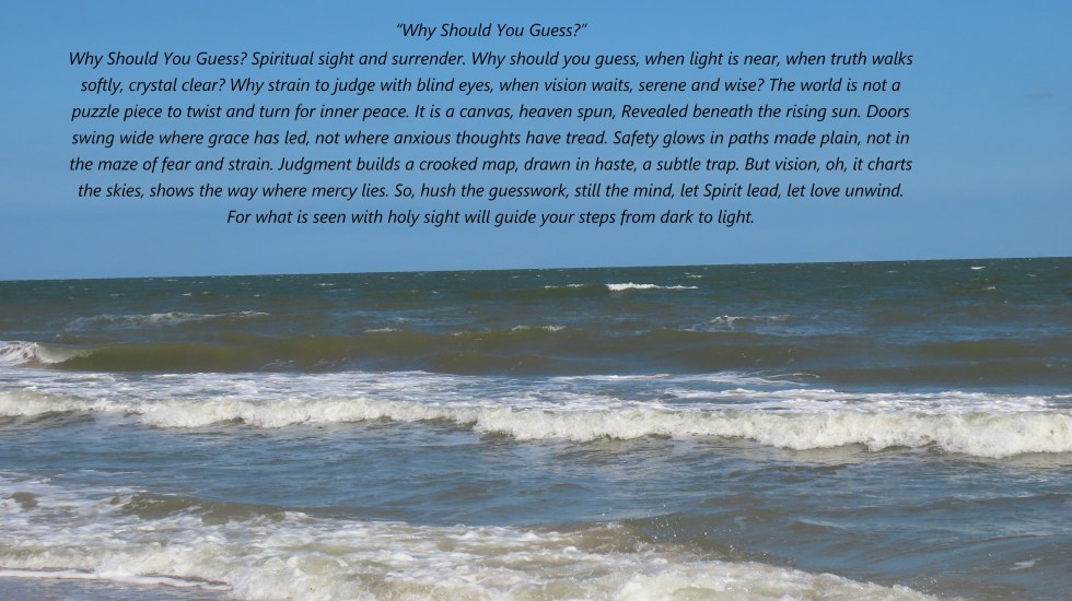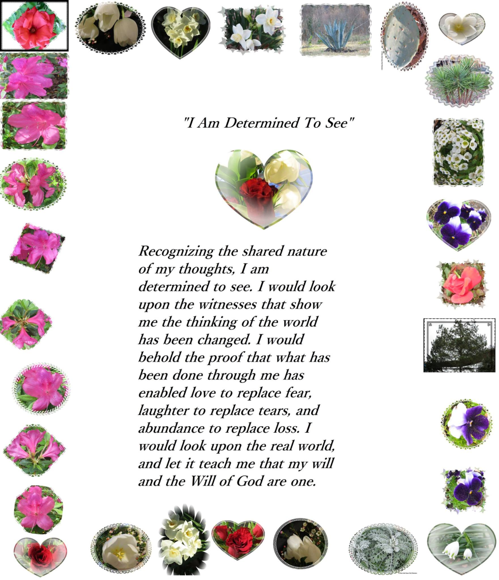 Father God, I was created in Your mind, a holy Thought that never left its home. I am forever Your Effect, and You forever and forever are my Cause. As You created me I have remained. Miracles are You. Righteousness is You. Your Love is Power. In Jesus Precious Name. Amen