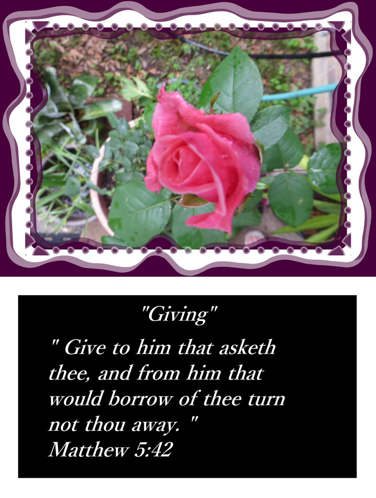 ” Give to him that asketh thee, and from him that would borrow of thee turn not thou away. “ Matthew 5:42