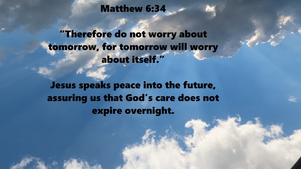 Jesus speaks peace into the future, assuring us that God’s care does not expire overnight.
