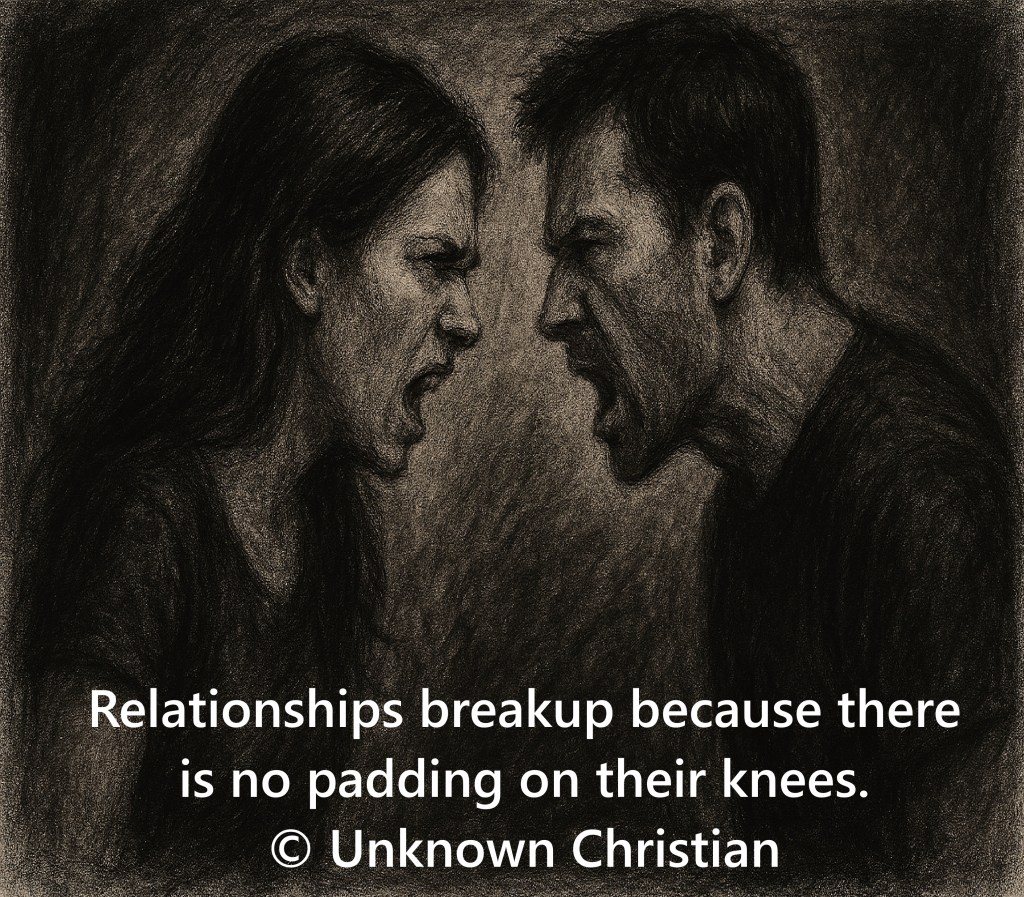 “Therefore, confess your sins to one another and pray for one another so that you may be healed. The prayer of a righteous person is powerful and effective.” James 5:16; A beautiful verse that speaks directly to prayer, humility, and love the journey from knees to love, is this one: Prayer doesn’t make people perfect or keep conflict away, but it helps them resolve issues. Healing happens when hearts humble themselves, connecting prayer and love as seen in 1 Corinthians 16:14: “Do everything in love.” Together, strong faith leads to strong relationships; prayer heals, not prevents, conflict.