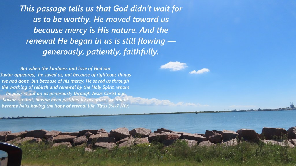 But when the kindness and love of God our Savior appeared, he saved us, not because of righteous things we had done, but because of his mercy. He saved us through the washing of rebirth and renewal by the Holy Spirit, whom he poured out on us generously through Jesus Christ our Savior, so that, having been justified by his grace, we might become heirs having the hope of eternal life. Titus 3:4-7 NIV: